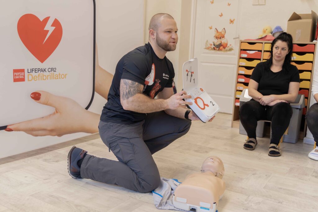 Aby zapewnić pełną gotowość na sytuacje nagłe, po przekazaniu urządzenia Michał Paprotny przeprowadził szkolenie z pierwszej pomocy z wykorzystaniem defibrylatora LIFEPAK CR2. Uczestnicy mieli okazję przećwiczyć praktyczne scenariusze, poznać obsługę LIFEPAK CR2 i dowiedzieć się, jak działać szybko, skutecznie i bez stresu.